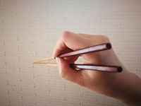 2.お客様が現在お使いのお箸を持った写真を2枚お送りください。