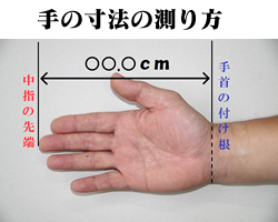 手の寸法の測り方は下の写真を参照ください。