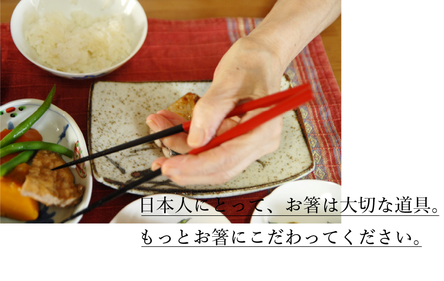 自分専用の木製や漆塗りの優雅なお箸を持ち、スプーンなどを使わずお箸だけでご飯や汁物などを食べるのは私たち日本人だけです。だからこそお箸にはもっとこだわっていただきたいと思います。